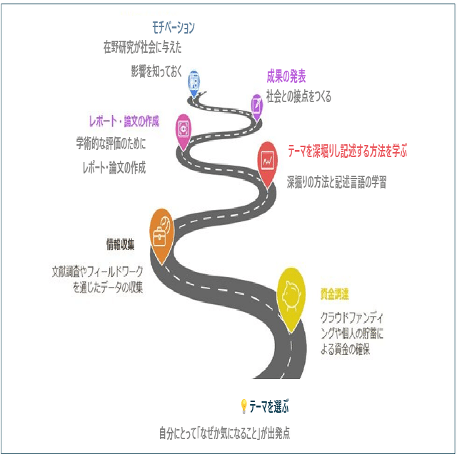 最初は「漠然と好き」「なんとなく気になる」という段階でも、在野研究を続けていくうちに、問いやテーマ、伝えたい内容が少しずつ具体的になっていくでしょう。